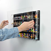This premium wall-mounted display case is the ideal accompaniment to your epic LEGO® minifigure collection, showcasing up to 60 minifigures in smart, front-facing rows. Each model is clearly visible through the high-quality acrylic front and side panels, with their visual appeal heightened against your choice of a black or white rear background panel.